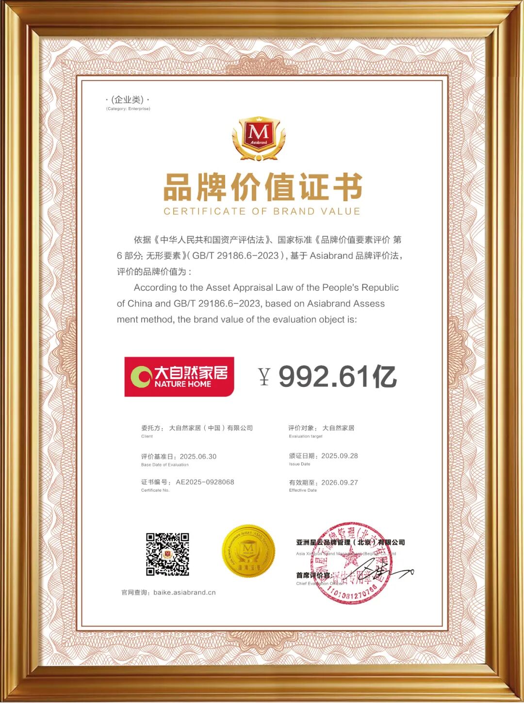 2025年9月27日-28日,由專業(yè)品牌評價機構(gòu)Asiabrand發(fā)起主辦,中國亞洲經(jīng)濟發(fā)展協(xié)會、一帶一路總商會、東盟-中國工商總會和亞太第一衛(wèi)視聯(lián)合主辦,被譽為亞洲品牌界年度“奧斯卡”的第20屆亞洲品牌盛典在中國香港舉行。 此次盛典上,大自然家居比肩一眾全球頂尖品牌,再次問鼎“亞洲品牌500強”,獲評“亞洲(行業(yè))十大領(lǐng)軍品牌”和“亞洲(行業(yè))消費者信賴品牌”,品牌價值躍升至992.61億。這是大自然家居自2018年登榜后,蟬聯(lián)上榜的第8年。
