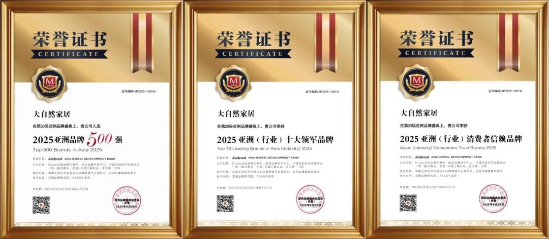 連續(xù)8年蟬聯(lián)“亞洲品牌500強”,是大自然家居堅守長期主義的榮譽注腳。從單一產(chǎn)品到大家居產(chǎn)業(yè)生態(tài)的構(gòu)建,不僅是產(chǎn)業(yè)格局的升華,亦是源于三十年來對產(chǎn)品、技術(shù)與責(zé)任的靜水深流,更是市場與消費者信賴的雙重回響。征程未盡,步履不停。未來,大自然家居將繼續(xù)以健康家居為基石,擔(dān)當(dāng)生活方式的倡導(dǎo)者與綠色未來的建設(shè)者,以產(chǎn)品力、布局力與責(zé)任力,持續(xù)賦能美好人居,穿越周期,與行業(yè)共進、與時代同行。