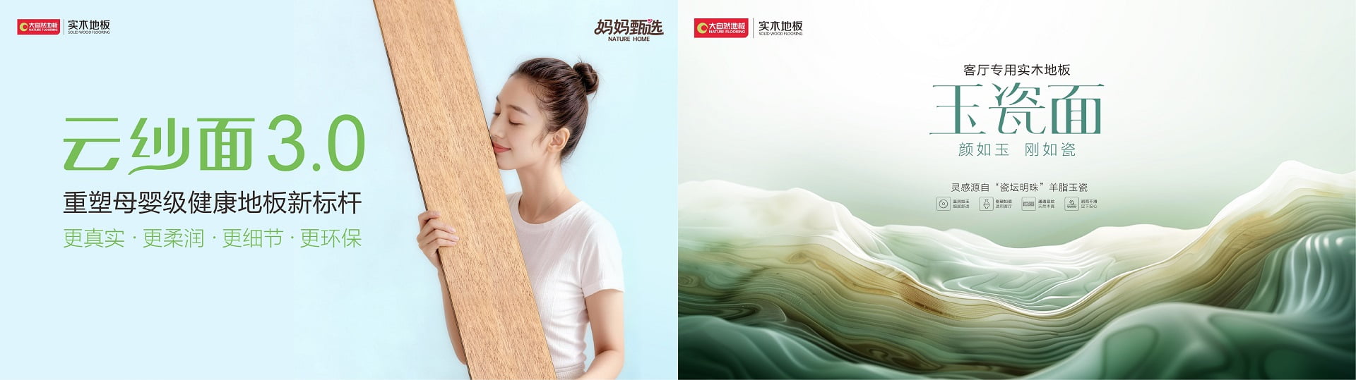 大自然深刻洞察新生代消費(fèi)者對(duì)家居美學(xué)與健康的需求。隨著消費(fèi)升級(jí),健康、美觀、便捷成為家庭家居的核心訴求,大自然家居精準(zhǔn)捕捉這一趨勢(shì),深耕健康家居領(lǐng)域,推出云紗面、玉瓷面等優(yōu)質(zhì)表面工藝,搭配零感薄涂技術(shù),既保證了地板的細(xì)膩質(zhì)感,又實(shí)現(xiàn)了健康環(huán)保無異味。