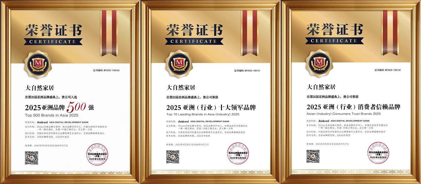 同時(shí),憑借深厚的品牌積淀與卓越的市場(chǎng)表現(xiàn),大自然家居躋身亞洲品牌500強(qiáng),這份榮譽(yù)是品牌實(shí)力的硬核見證,更是千萬消費(fèi)者口碑的長(zhǎng)期沉淀,成為品牌穿越周期的堅(jiān)實(shí)底氣。